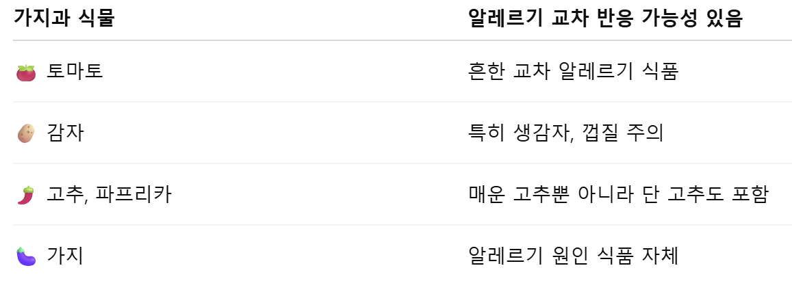 4. 가지 알레르기나 과민 반응 시 피해야 할 유사 식품