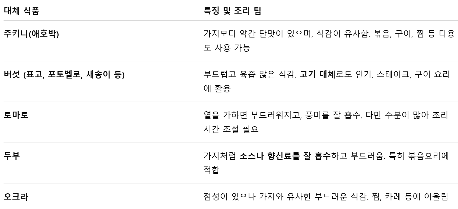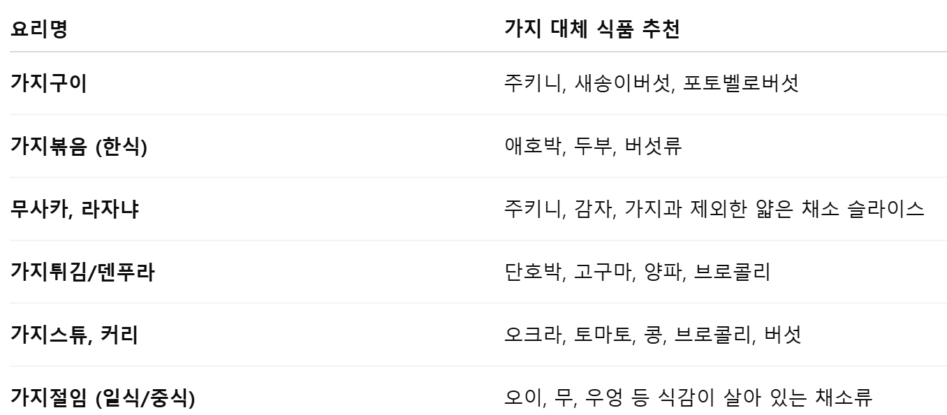3. 가지가 들어가는 요리별 대체 식품 제안