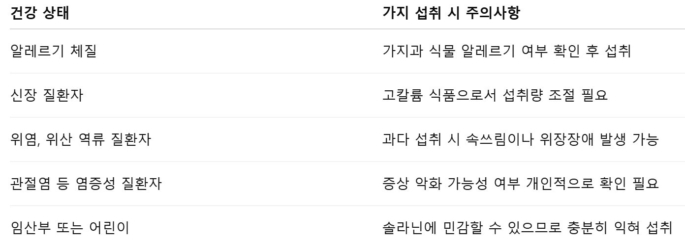 6. 가지 섭취 시 주의해야 할 사람들