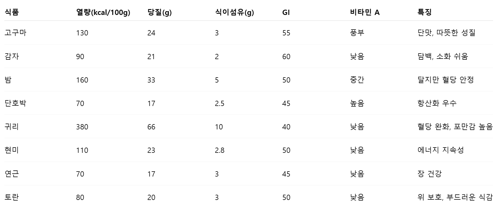 고구마보다 GI(혈당지수)는 조금 높지만 소화가 잘됨