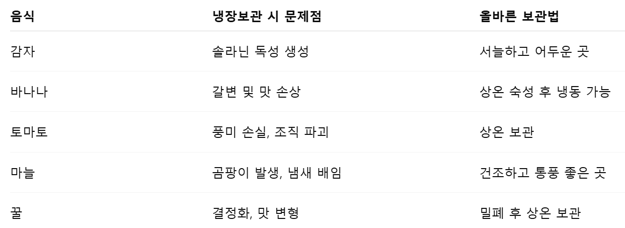 대부분의 사람들은 "냉장보관 = 안전한 보관"이라고 생각하기 쉽습니다. 하지만 오늘 소개한 감자, 바나나, 토마토, 마늘, 꿀처럼, 냉장보관이 오히려 독성물질을 유발하거나 품질을 떨어뜨리는 음식도 존재합니다.