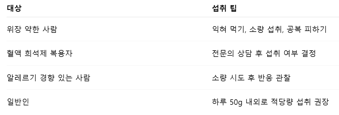 1-2) 위장이 약한 분은 익혀서 섭취하거나, 소량만 드시는 것이 좋습니다.