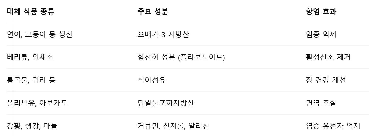 5. 염증 대체 식품 및 항염 효과 요약
