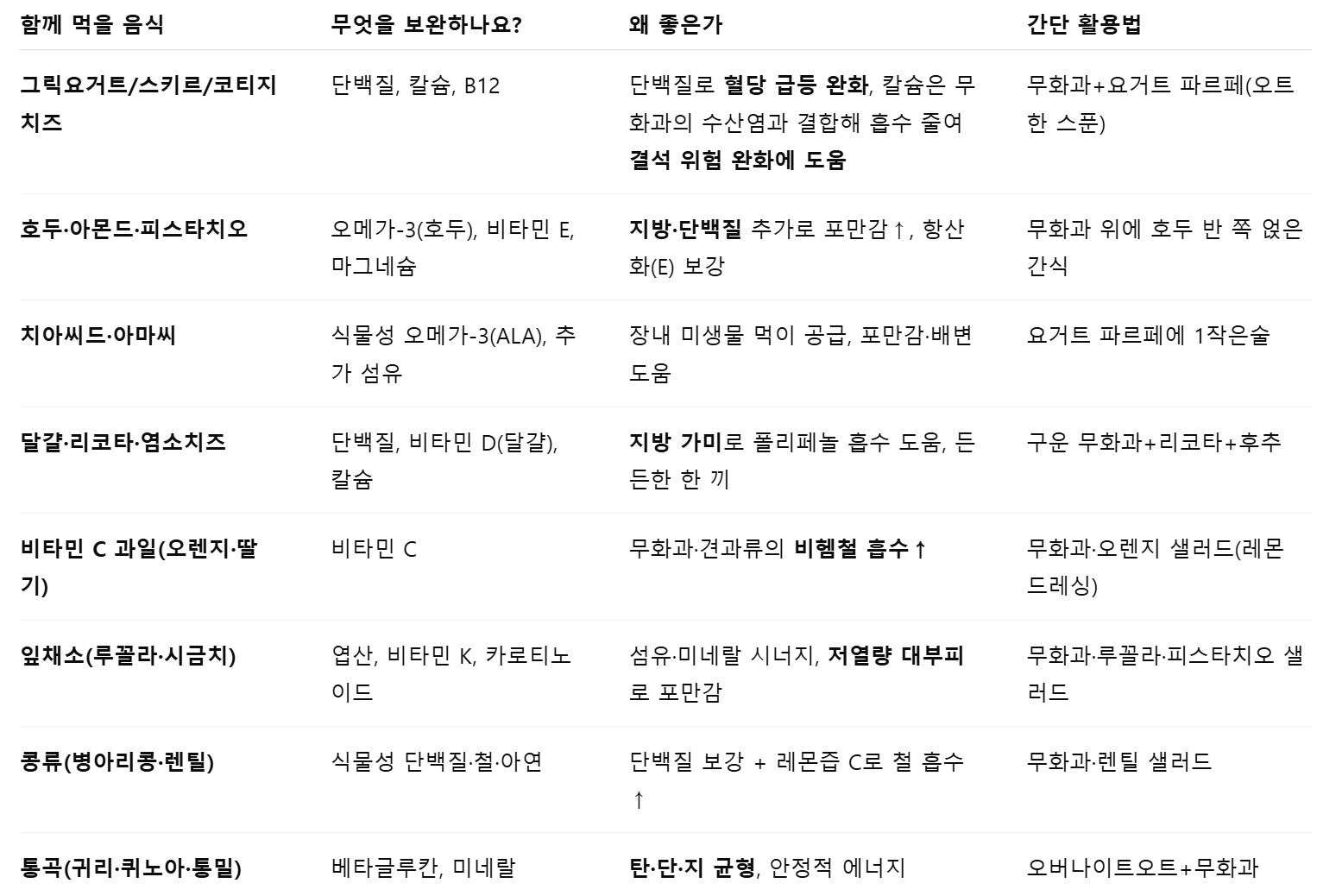 2. 무화과와 함께 먹으면 좋은 음식표