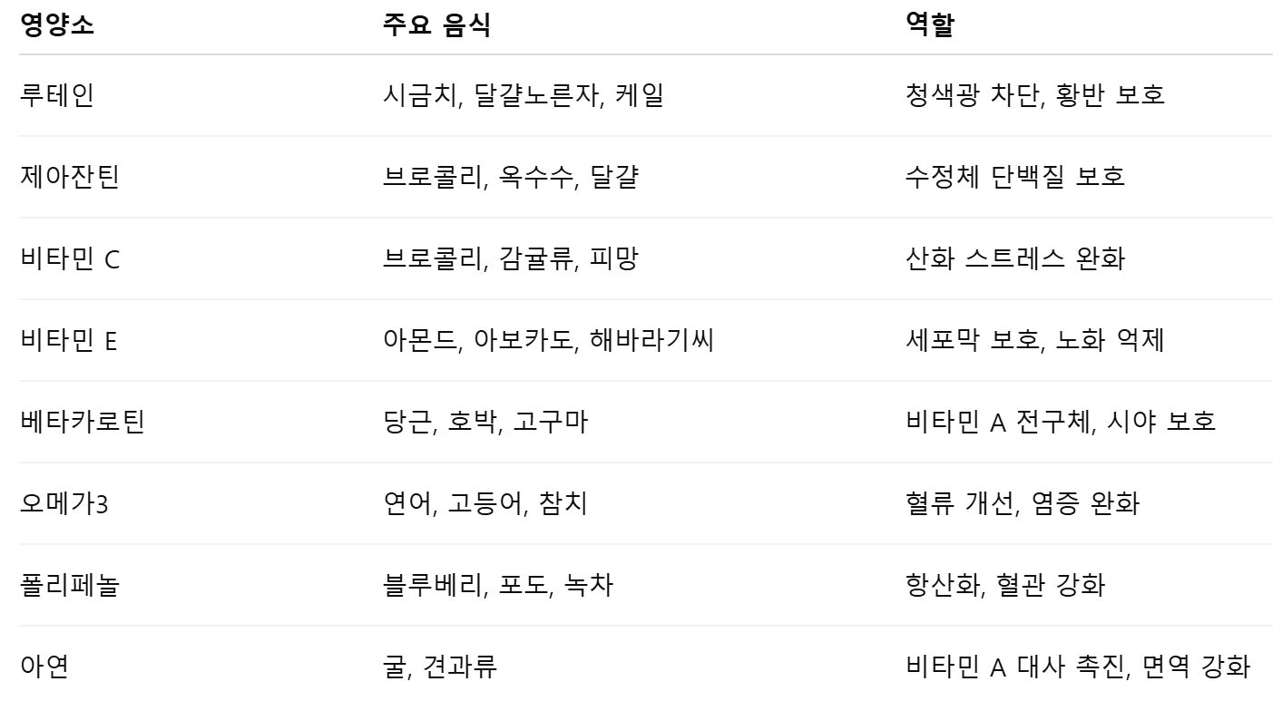 이는 백내장뿐 아니라 황반변성 예방에도 큰 도움이 됩니다.