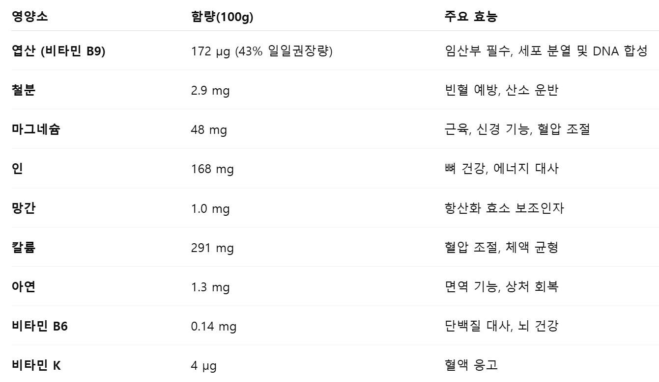 - 완전 단백질은 아니지만 리신(lysine)이 풍부하여 곡물과 함께 섭취하면 아미노산 균형이 좋음