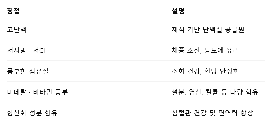 - 채식주의자나 비건 식단에서 훌륭한 단백질 공급원