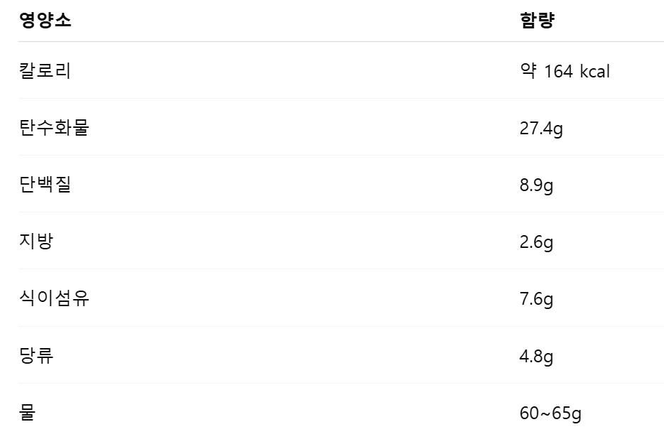 1. 삶은 병아리콩 기본 영양 성분 및 칼로리 (100g 기준)