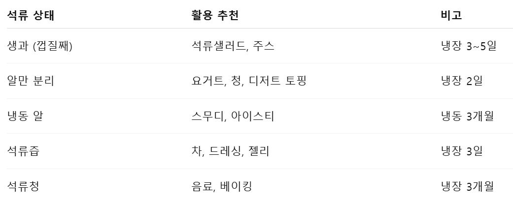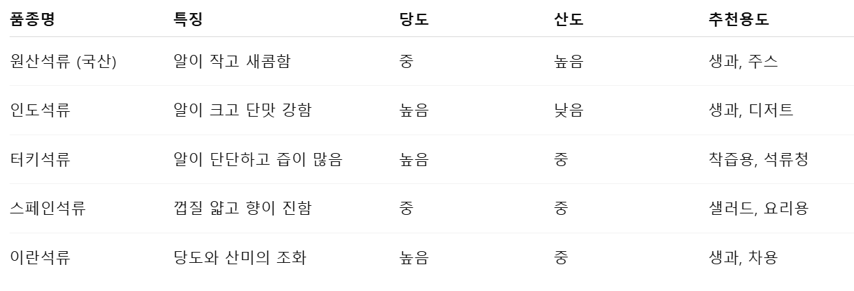 📌 국산 석류는 비교적 산도가 높아 상큼한 맛이 특징이며,