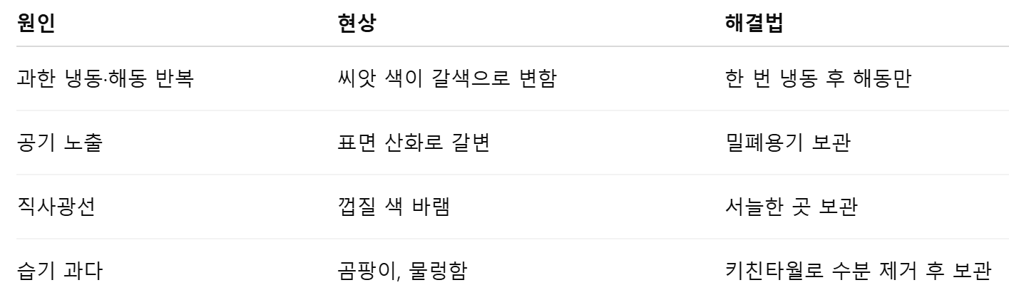 ❌ 냉장·실온 반복 이동 금지 – 수분 응결로 곰팡이 발생
