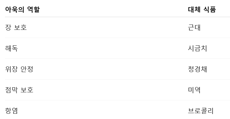 👉 아욱의 “장 보호 기능”을 가장 부드럽게 대체
