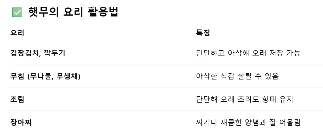 따라서, 월동무와 햇무의 차이점 및 요리방법에 대해 살펴보겠습니다.