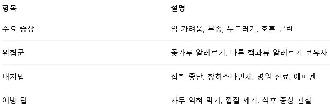 - 다른 핵과류(복숭아, 체리, 살구 등) 알레르기가 있는 사람