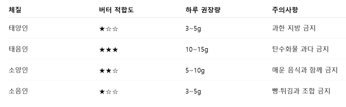 체질 버터 적합도 하루 권장량 주의사항