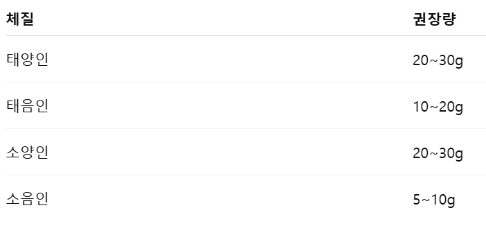5-2) 체질별 하루 권장량