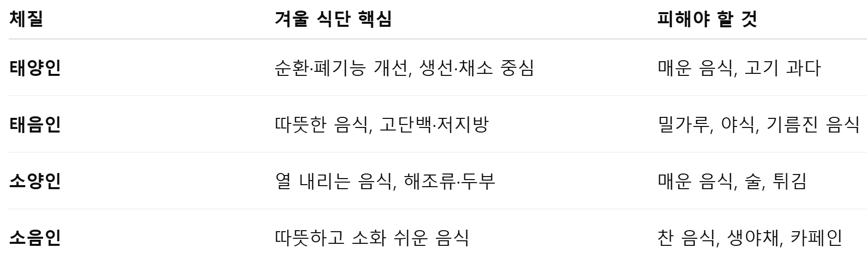5. 체질별 겨울 식단 핵심 총정리