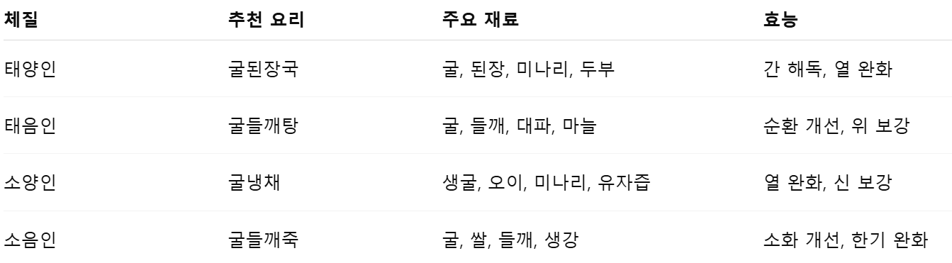 6. 체질별 굴 추천 레시피 요약