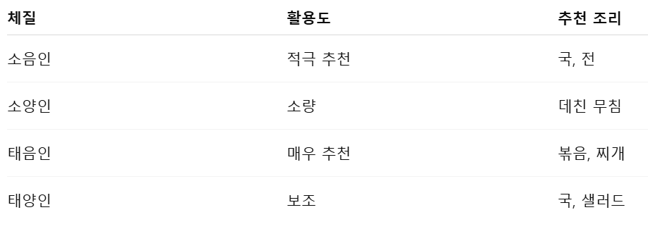 하지만 체질에 따라 따뜻한 보강식이 되거나, 열을 올리는 식품이 될 수 있습니다.