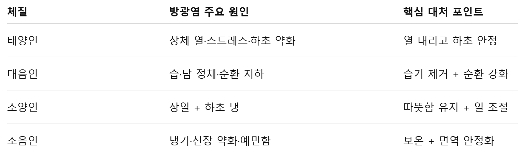 5. 체질별 방광염 대처법 요약표