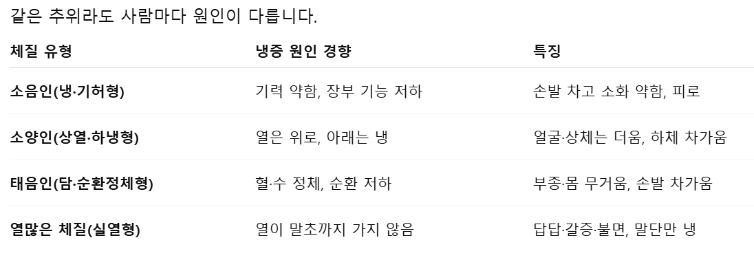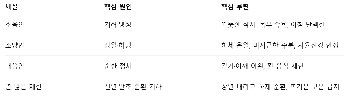 따라서 체질별 생활 루틴은 단순 보온보다 효과가 높습니다.