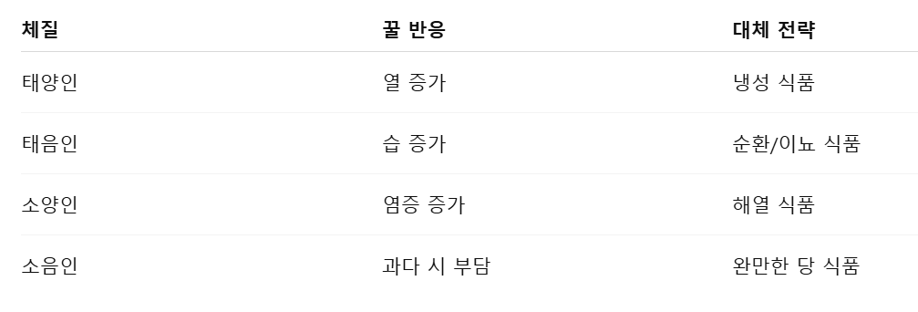5. 체질별 핵심 비교 요약표 & 가장 중요한 핵심 원리