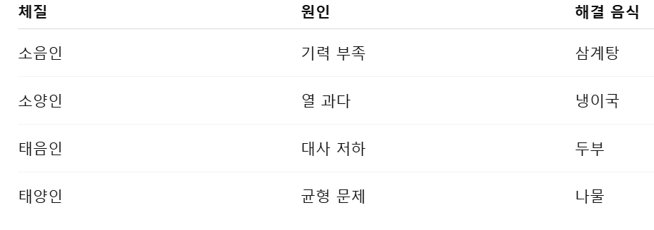 “소음인은 따뜻한 보양식으로 체력을 채워야 한다”