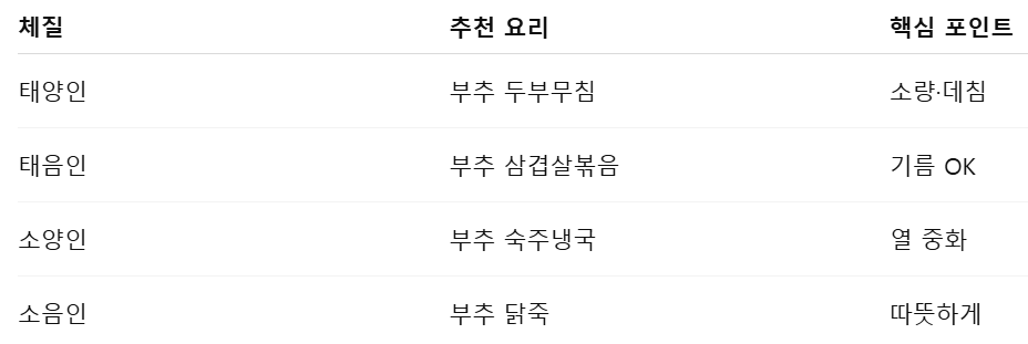 5. 체질별 부추 요리 요약표