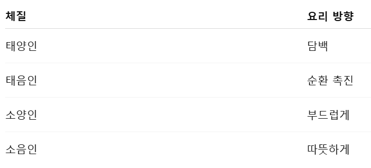 👉 체질에 맞는 조리법이 중요합니다.