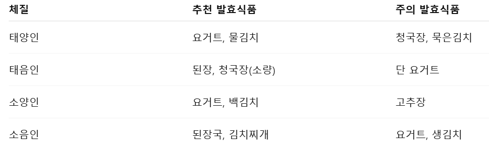 이를 바탕으로, 체질에 맞는 발효식품 선택법과 이유에 대해 알아보겠습니다.