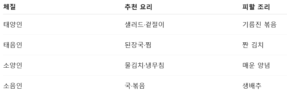 5. 체질별 배추 요리 한눈 요약