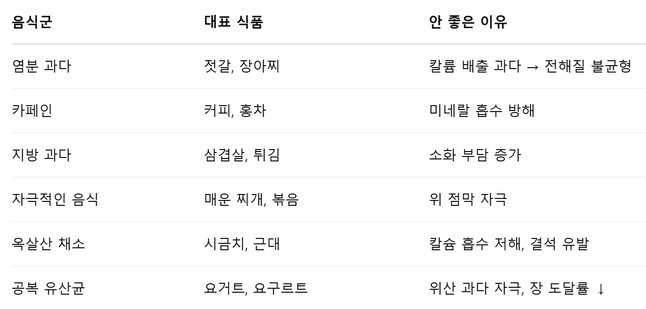 - 특히 위염, 과민성대장증후군, 위식도역류가 있는 분들에게는 부담이 큽니다.