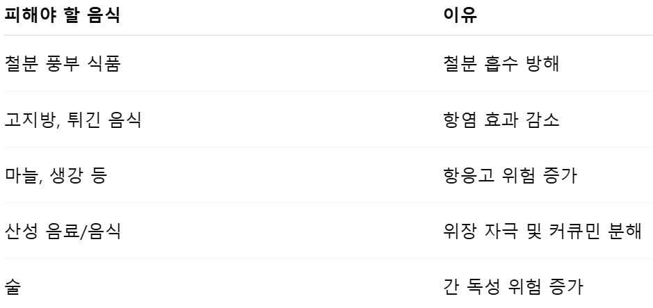 2-2) 주의 대상: 빈혈 환자 또는 철분 보충제를 복용 중인 경우
