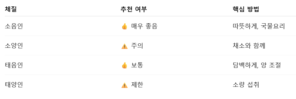 👉 소양인은 많이 먹으면 열이 더 올라갈 수 있습니다.