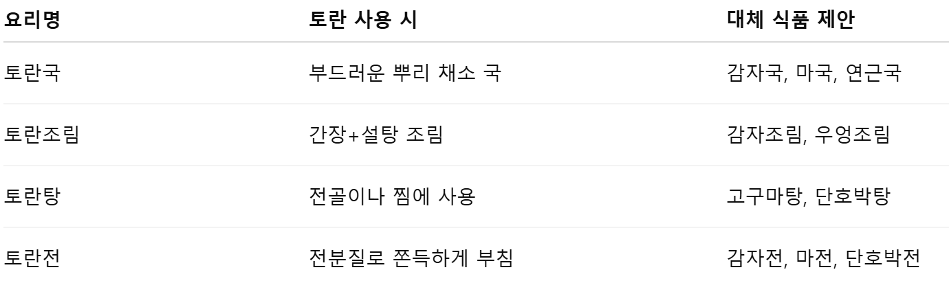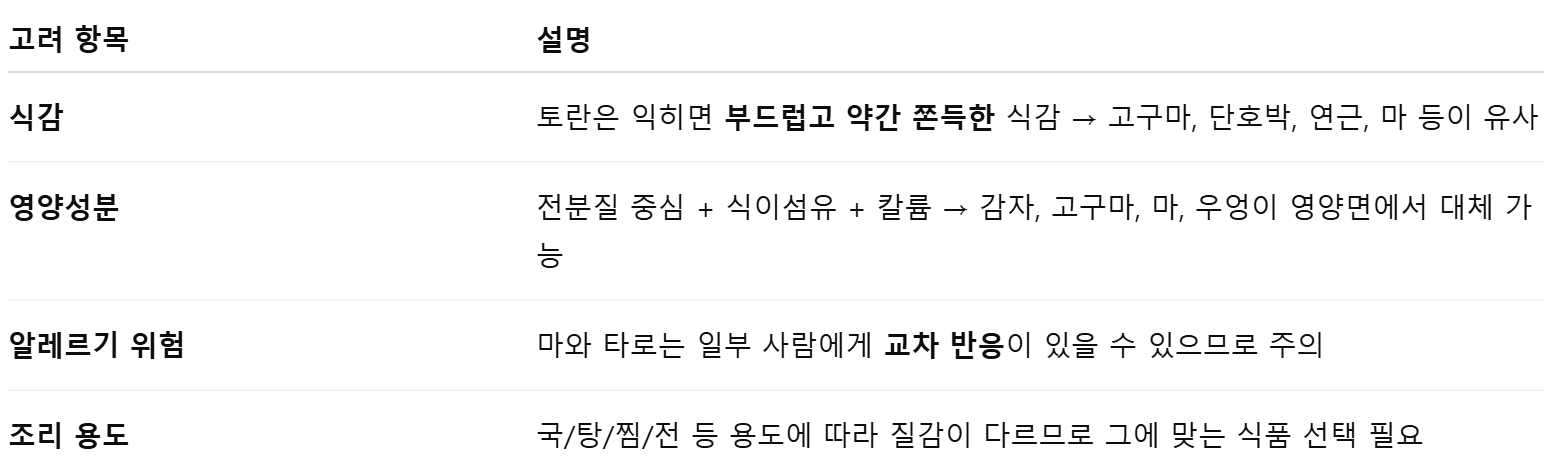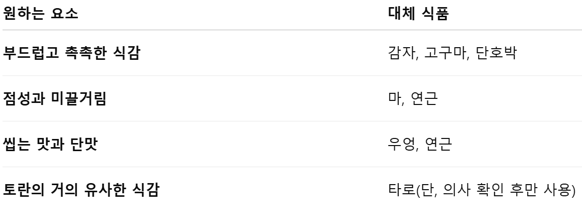 토란을 대체할 수 있는 음식과 그 이유