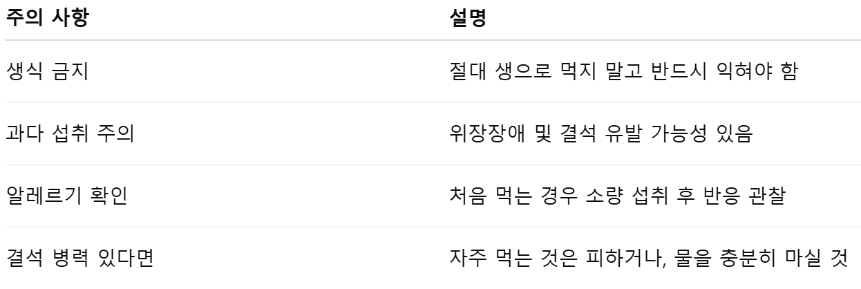 1-3) 예방: 반드시 충분히 익혀서(삶거나 찌기) 섭취해야 합니다.