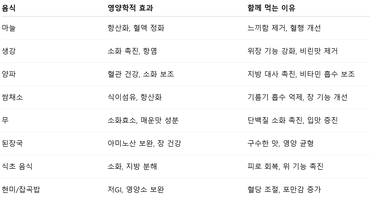 ① 효과: 소화 효소 보조, 기름기 제거, 입맛 돋움